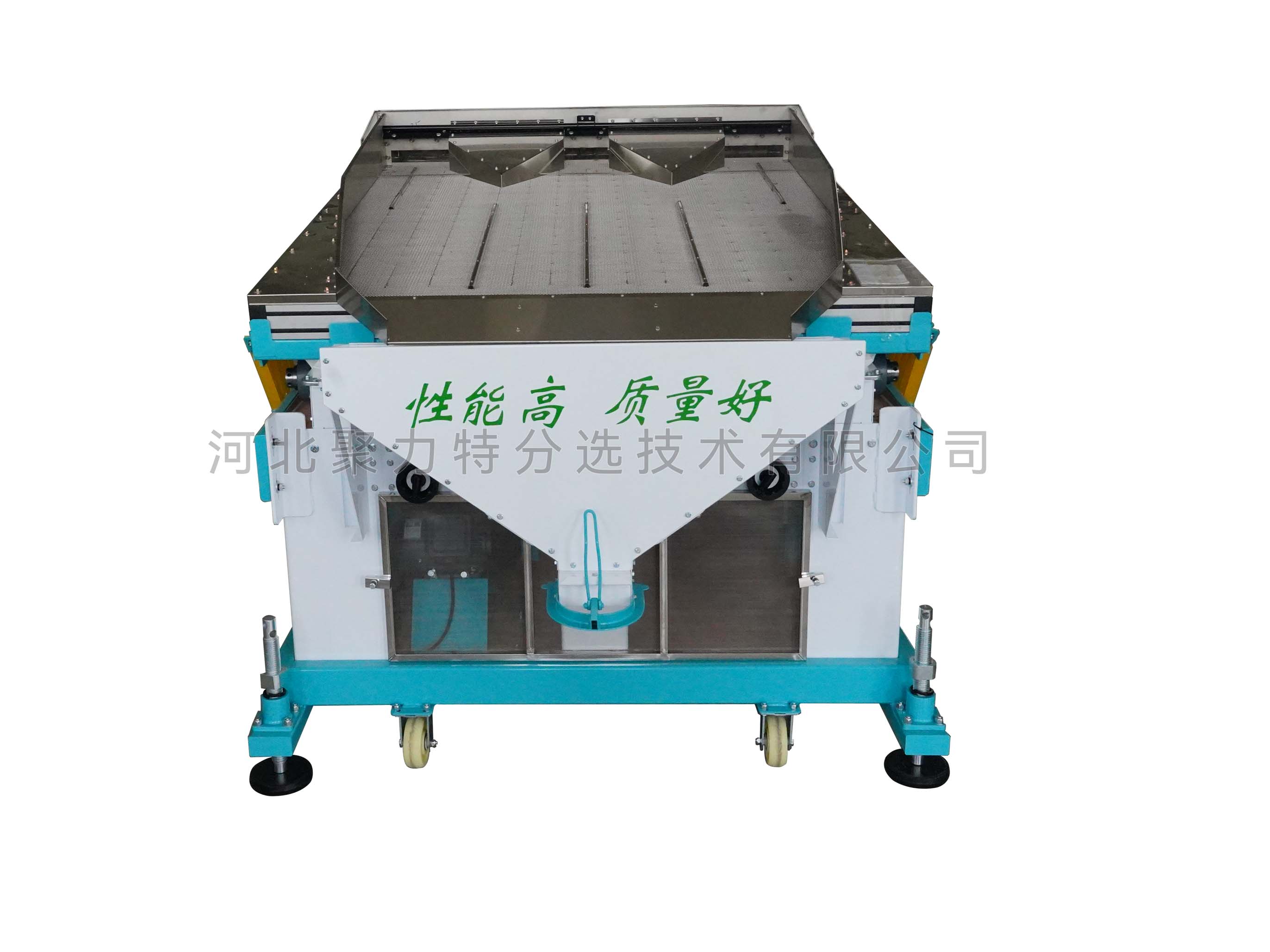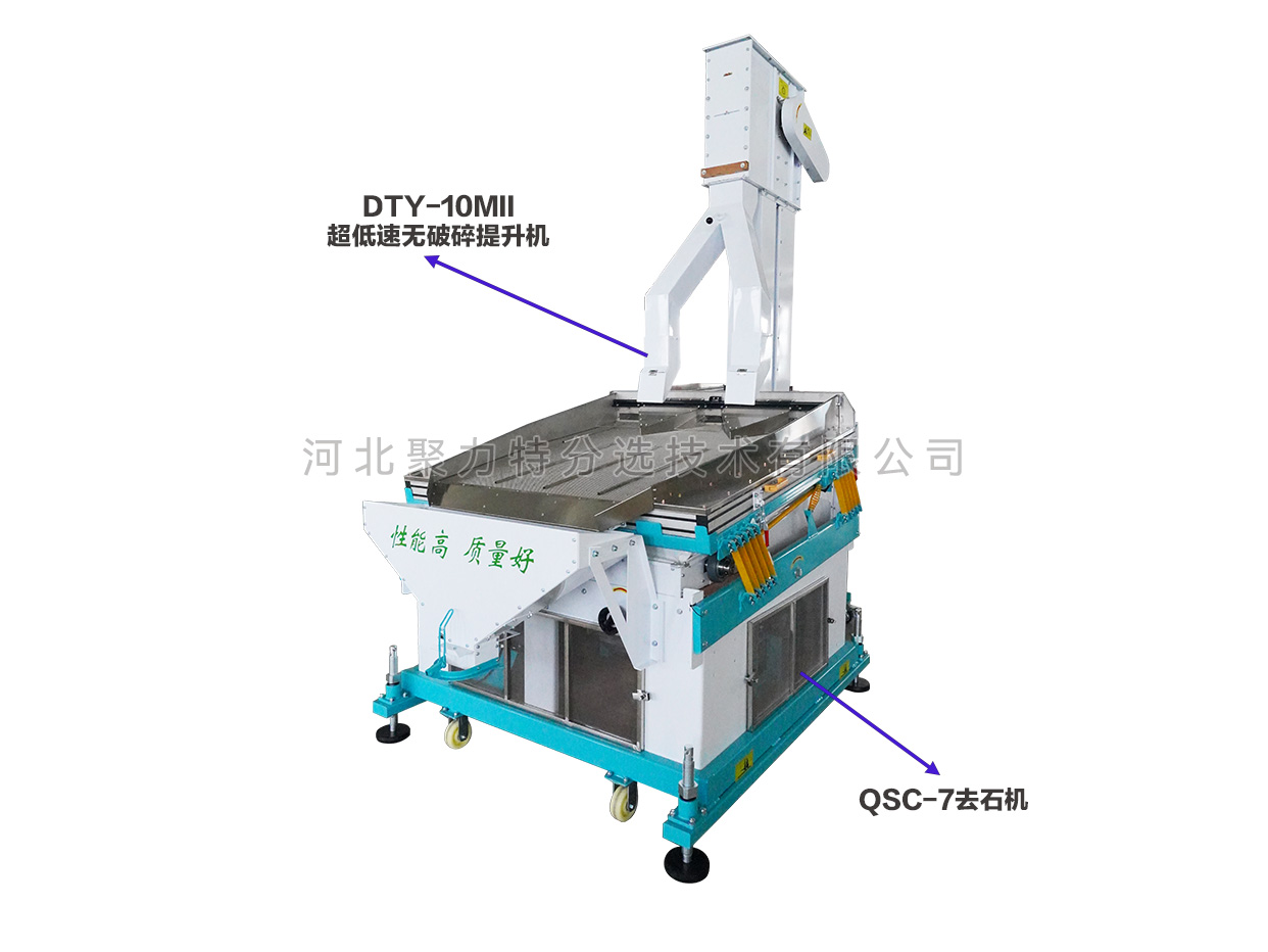 根據(jù)物料中作物和石子的比重差異,通過調(diào)整風(fēng)壓、振幅等參數(shù),使比重較大的石子沉到底部貼著篩面由低向高運動,比重較小的作物懸浮在表面由高向低運動,從而達到分離的目的。