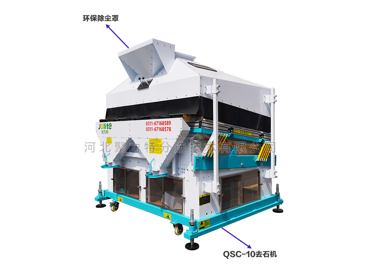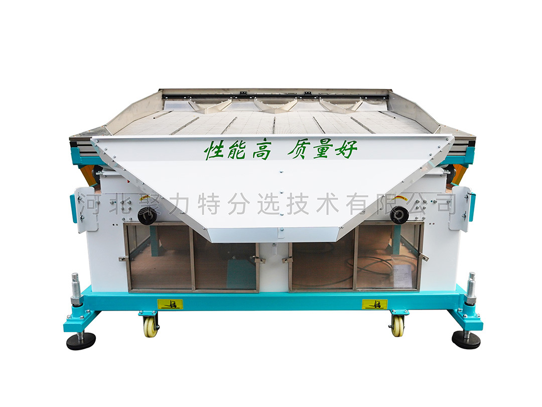 根據物料中作物和石子的比重差異,通過調整風壓、振幅等參數,使比重較大的石子沉到底部貼著篩面由低向高運動,比重較小的作物懸浮在表面由高向低運動,從而達到分離的目的。