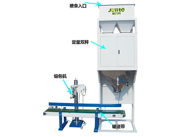 設定包裝范圍后,物料由給料機構加入稱量斗,控制器收到傳感器的重量信號后,按預先設定的程序值進行控制,開啟加料門進行給料;當達到設定的范圍,給料機構停止給料,開始另一個秤體的給料。自動振袋后,觸動行程開關,物料袋自動松開落入輸送帶上,被送到縫包機完成縫包。